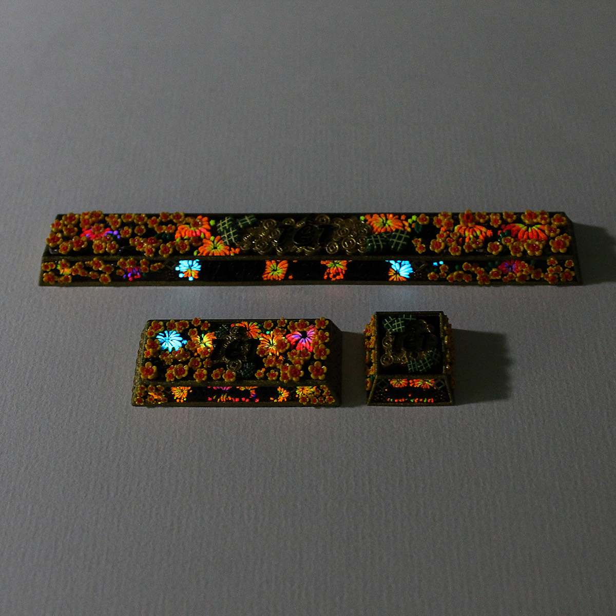 Every keycap in Artifact – The Spirit of the New Year is crafted entirely by hand using 100% multi-layer color casting.